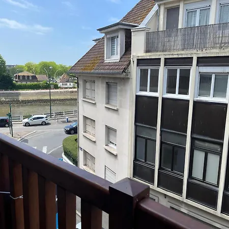 Charmant Studio Lumineux Et Fonctionnel设有小厨房和配阳台,电视 和卫星频道平板电视的客房. 入住Charmant Studio Lumineux Et Fonctionnel的客人可以在露台上发发呆,步行20分钟即可抵达杜维尔海滩.